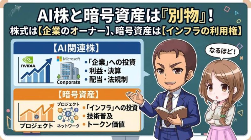 AI関連株と暗号資産を同じ土俵で比較すること自体が、実は間違いです。