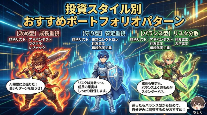 - 自分の投資スタイルに合った銘柄を選ぶ:攻め型・守り型・バランス型──正解は1つではない。大切なのは「自分のリスク許容度に合った選択をすること」。