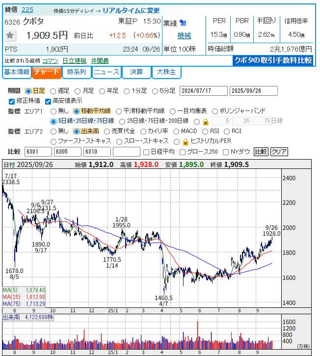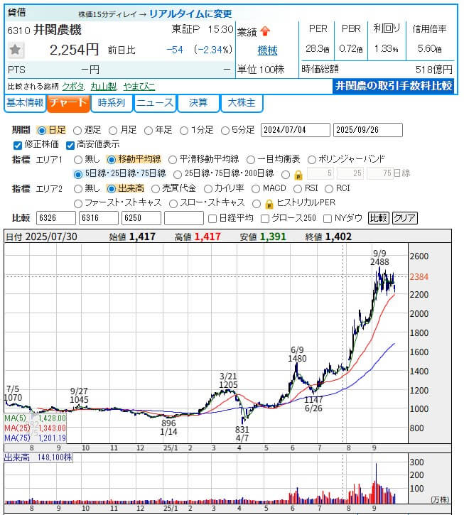 最大手以上の伸びしろがあると考えて、筆者はすでに井関農機へ投資しています。