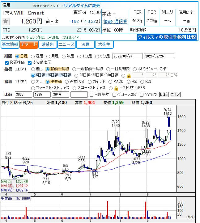 Will Smartは2024年3月に上場したばかりの企業なので、時価総額も比較的小さいよ。