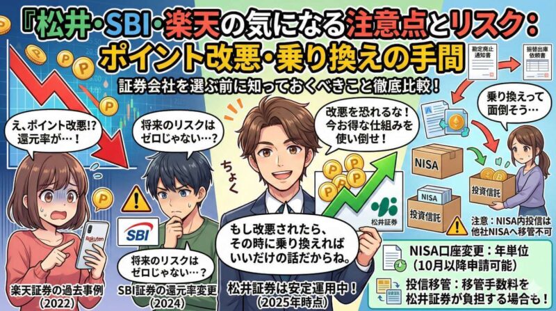 松井証券・SBI・楽天の気になる注意点とリスク|ポイント改悪・乗り換えの手間