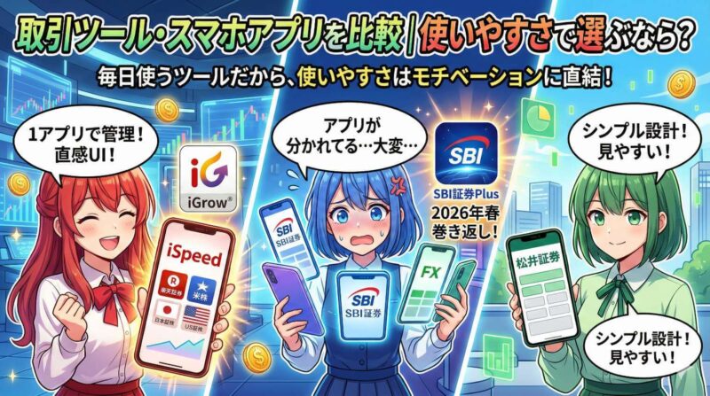 - SBI証券:商品ごとにアプリが分かれていて管理が煩雑。ただし2026年春リリースの「SBI証券Plus」で改善予定