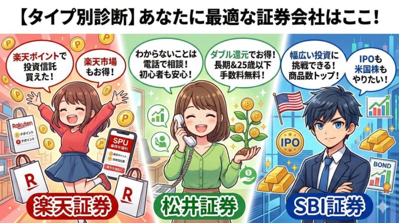 【タイプ別診断】あなたに最適な証券会社はここ!