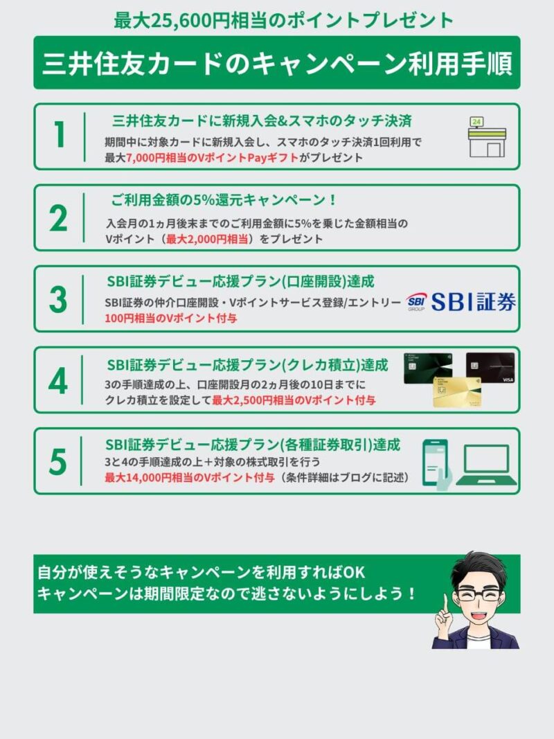 SBI証券×三井住友カードはキャンペーンを実施中です。