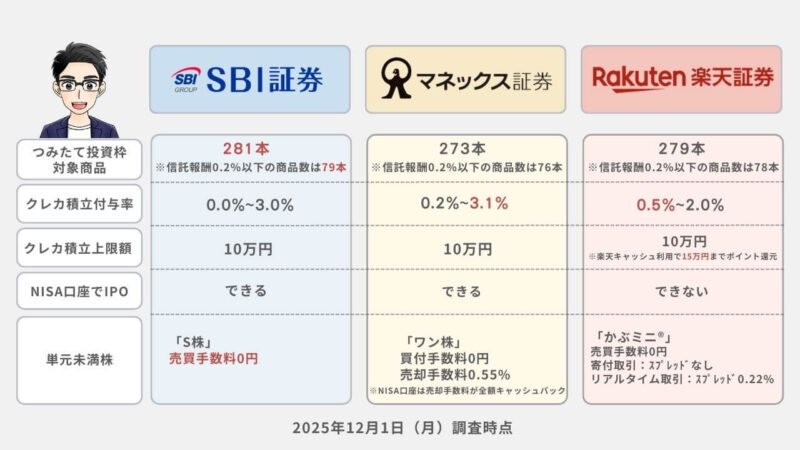 今すぐ新NISA口座を開設したい方は「新NISAの正しい始め方(SBI証券)・(楽天証券)・(マネックス証券)」も参考にしてくださいね。