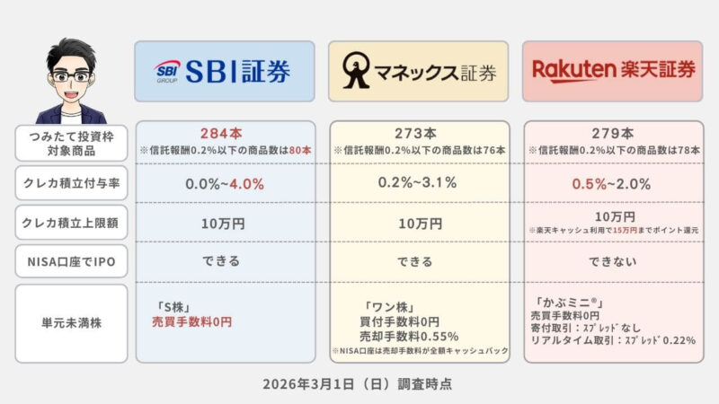 今すぐ新NISA口座を開設したい方は「新NISAの正しい始め方(SBI証券)・(楽天証券)・(マネックス証券)」も参考にしてくださいね。