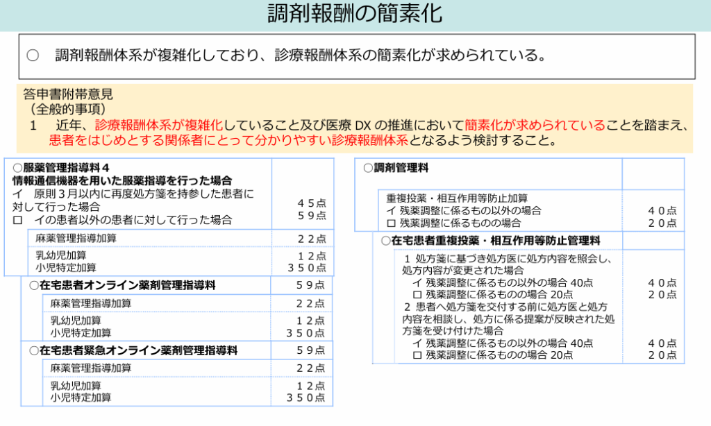 2026年改定では、調剤報酬全体の簡素化が大きな論点です。