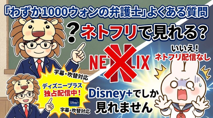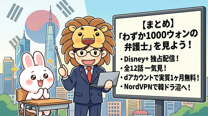 この記事では「わずか1000ウォンの弁護士」の視聴方法から、お得なDisney+の加入方法、さらにはVPNを使って日本未配信の韓国ドラマを楽しむ方法まで、分かりやすく解説します!